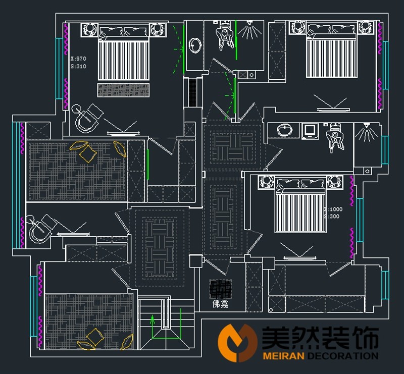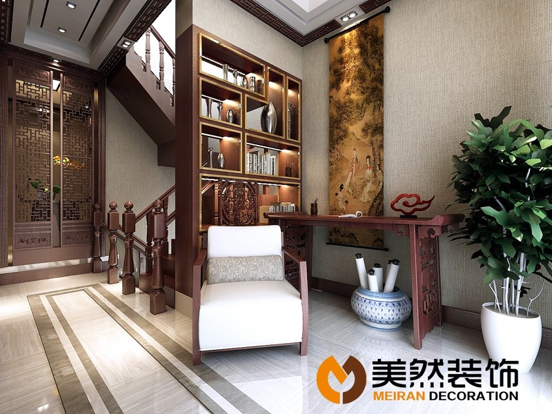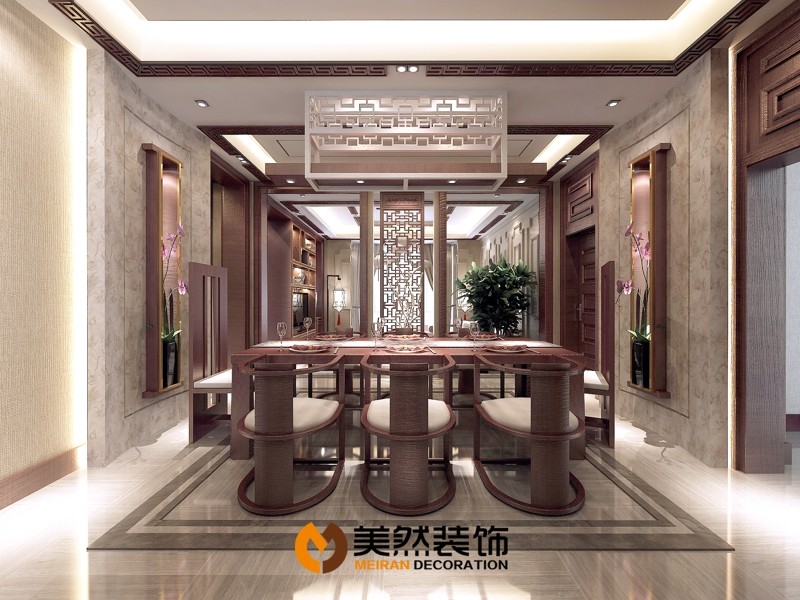 本案追求高雅簡潔卻又低調的淡雅氣質。這是一個三層的別墅,一層是起居室和餐廳,二層則是設計作為十分私密的私人空間,是主人家的臥室和主要活動空間,生活得精致通常是以舒適作為基本,然后是周到。地下一層是娛樂空間。運用現代東方主義設計,以耐人尋味的紅胡桃色作為主背景,一改往日繁瑣冗雜的修飾手法,用沉穩的筆觸勾勒出溫婉典雅氣質,糅合空間的色調,一切仿佛渾然天成。相近色系完美的跳躍搭配使得空間有著優雅的變化,隨處都展示著主人超脫的審美觀和悠閑淡然的氣質